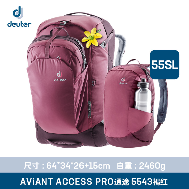 deuter多特 通途专业版 ACCESS PRO双肩背包 子母包 德国进口逸行-通途Pro 商务旅行双肩包 褐红55SL 3510122