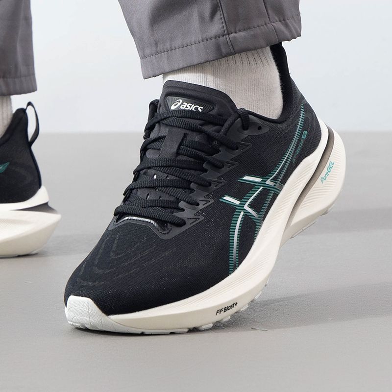 亚瑟士 男 跑步鞋 1011B861-004 黑色/蓝绿色 跑步鞋男缓震舒适透气低帮运动鞋
