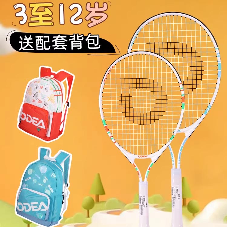 Odear欧帝尔网球拍 儿童网球拍21/23/25寸青少年带背包套餐网球初学启蒙球拍 蓝色/橙色可选