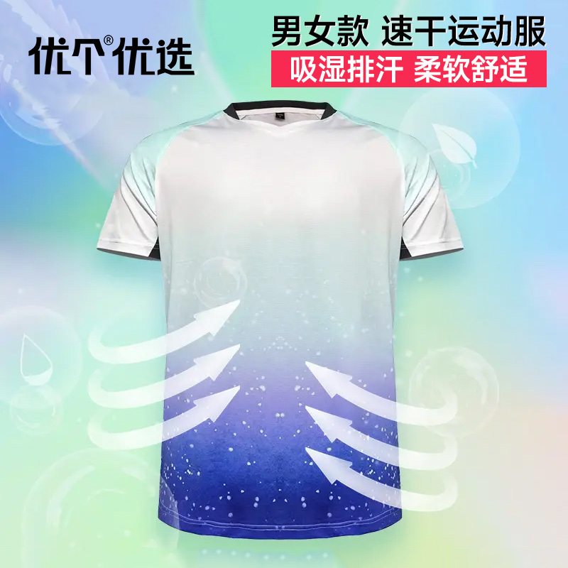 优个优选 多功能运动服 男女款 运动短袖T恤 V领速干运动上衣 打球跑步比赛训练服 83442-270