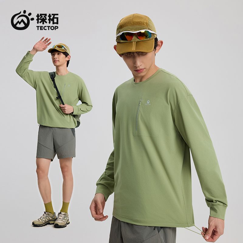 TECTOP探拓 户外速干长袖 男女款春夏防晒透气运动宽松训练服 梅子青-男款 2512410TX