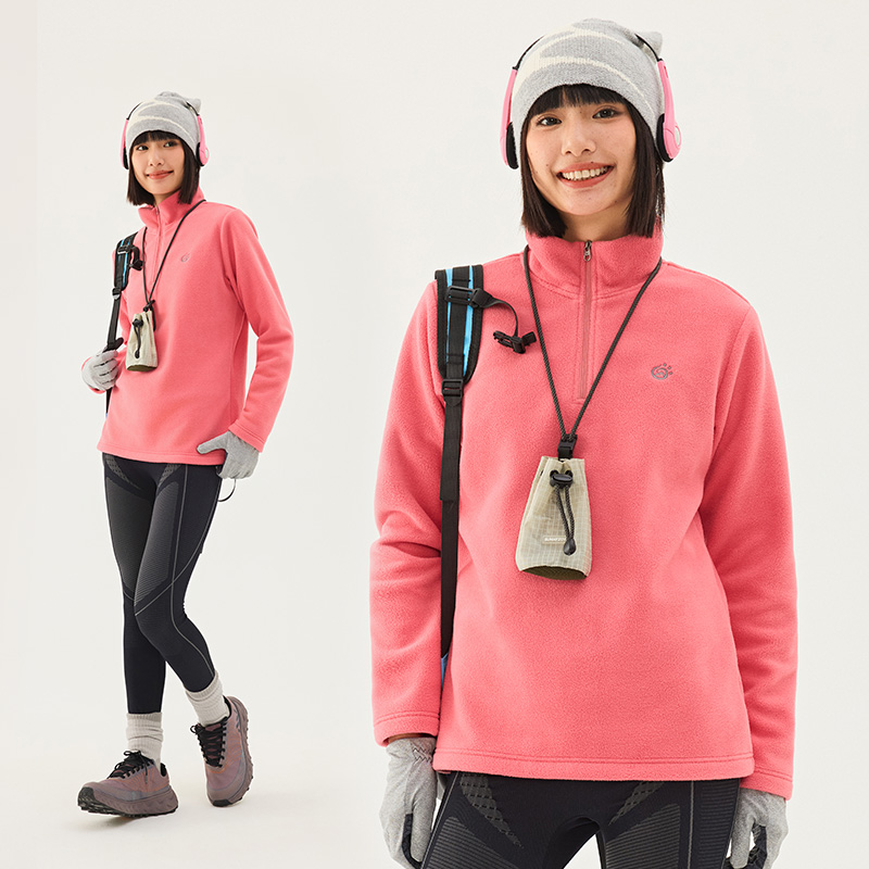 TECTOP探拓 秋冬户外女款抓绒衣 半开衫运动加绒休闲保暖情侣套头抓绒衣 MZRY033-6 藕粉