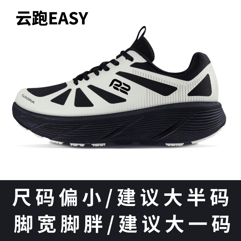 R2 云跑EASY跑步鞋 四季款厚底缓震跑步鞋 专业马拉松跑步鞋 男女款超轻软弹运动跳操跳绳鞋 黑/胡椒白