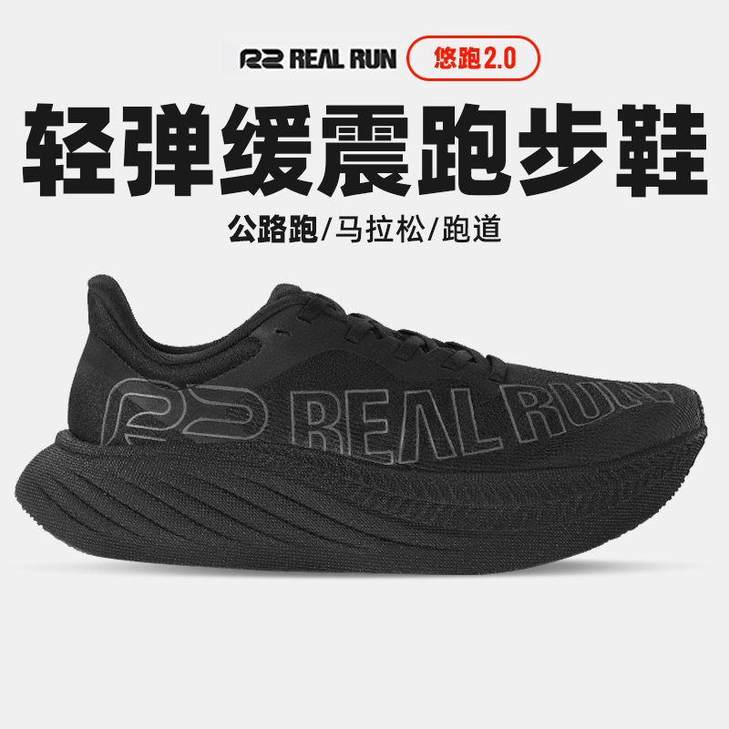 R2 悠跑2.0跑鞋 运动休闲鞋 马拉松跑鞋 秋季轻便缓震回弹透气跑步鞋 软底男鞋 暗夜黑