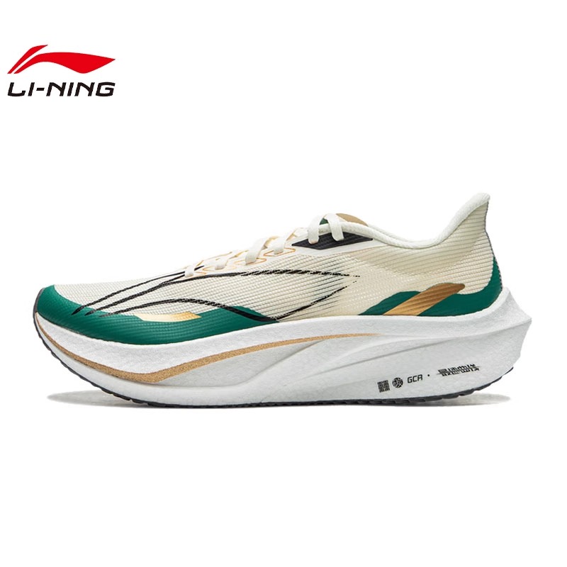 LINING李宁 飞电4C竞速跑鞋 男鞋25春夏款马拉松体测碳板回弹专业竞速运动鞋 ARMU005-26 米白色/石绿色