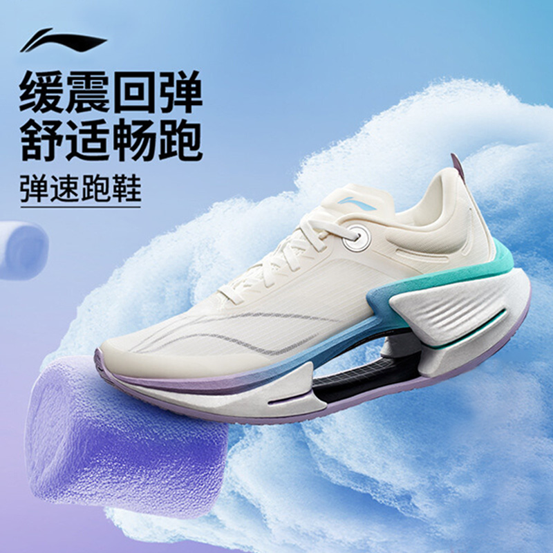 LINING李宁 女 绝影3弹速跑鞋 ESSENTIAL减震轻量弹速跑步鞋 耐磨专业跑鞋 ARRV002-21 标准白/金雾色