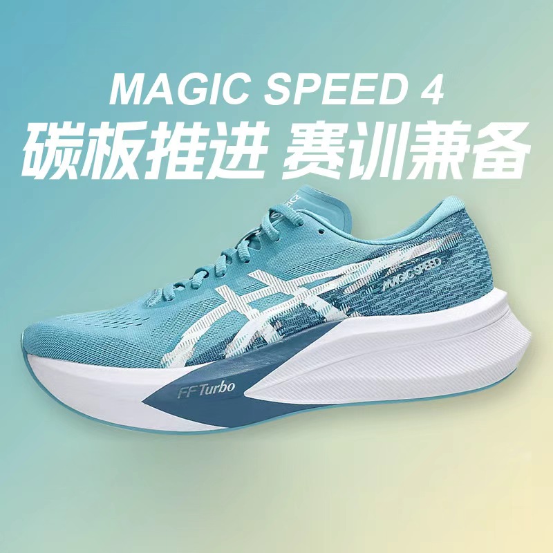 ASICS亚瑟士 男 竞速跑鞋 MAGIC SPEED 4(2E)宽楦比赛训练碳板跑步鞋 回弹轻量运动鞋 1011B873-402 蓝色/白色