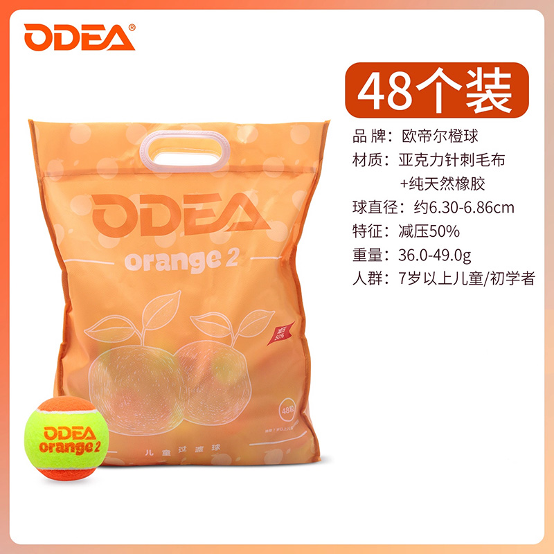 Odear欧帝尔网球 儿童网球软式无压网球过渡球减压训练球减压橙球减压50% 整袋48粒