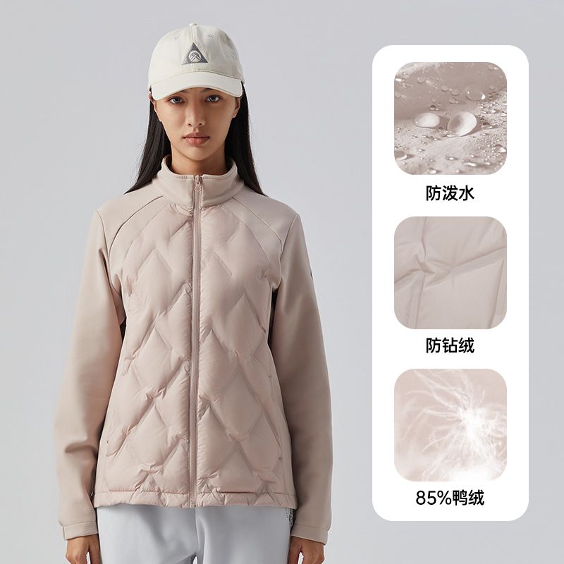 探拓 户外白鸭绒轻薄羽绒服 女款拼接短款外套防钻绒防水立领羽绒衣 2347234YR-2 藕粉色