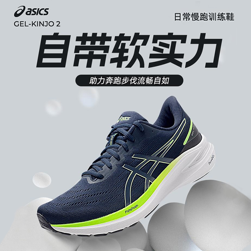 ASICS亚瑟士 男跑步鞋 GEL-KINJO 2网面慢跑鞋 轻质耐磨减震跑步鞋运动鞋 1011C151-400 蓝色/绿色
