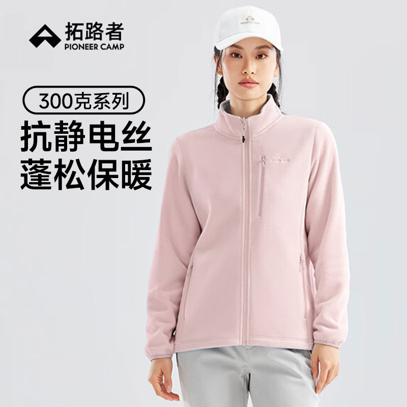 拓路者 摇粒绒抓绒衣 女秋冬户外运动徒步摇粒绒保暖防风立领开衫外套冲锋衣内胆 GKBLW30001 粉色