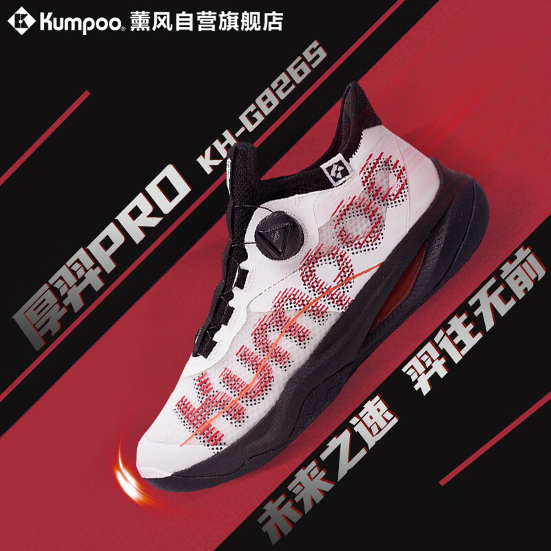 KUMPOO 薰风 羽毛球鞋 厚羿 纽扣鞋带 透气减震 男女款运动鞋熏风KH-G826S 白红黑