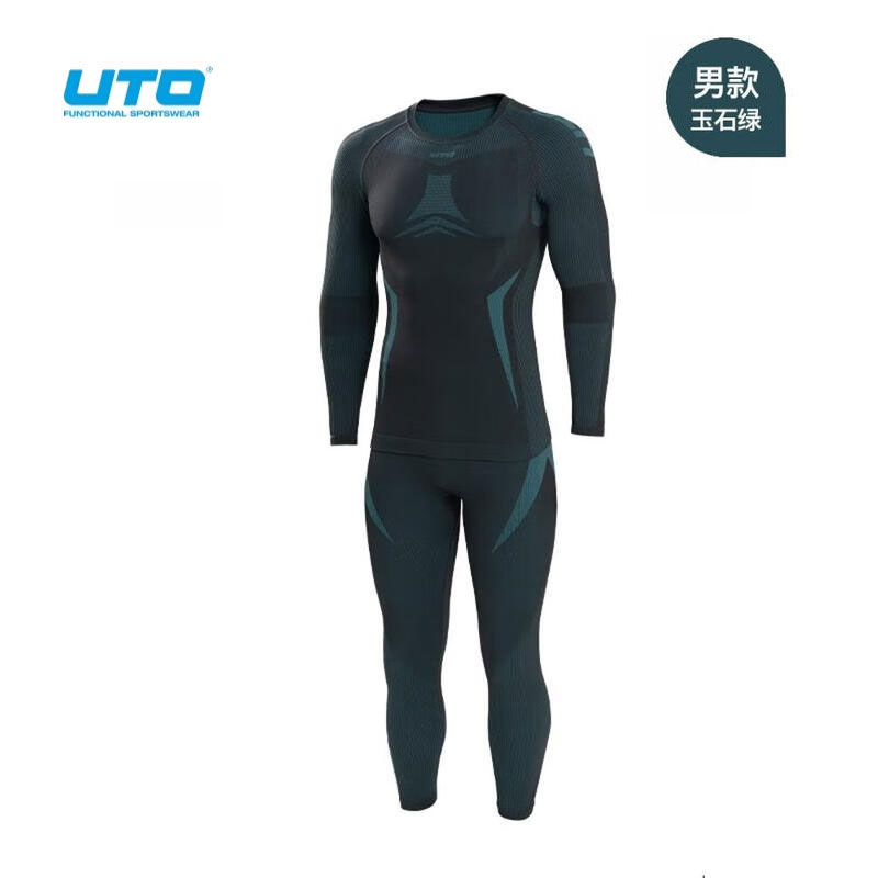 UTO悠途 男士炭芯速干套装 男户外跑步滑雪登山长袖运动内衣套装 943106 玉石绿