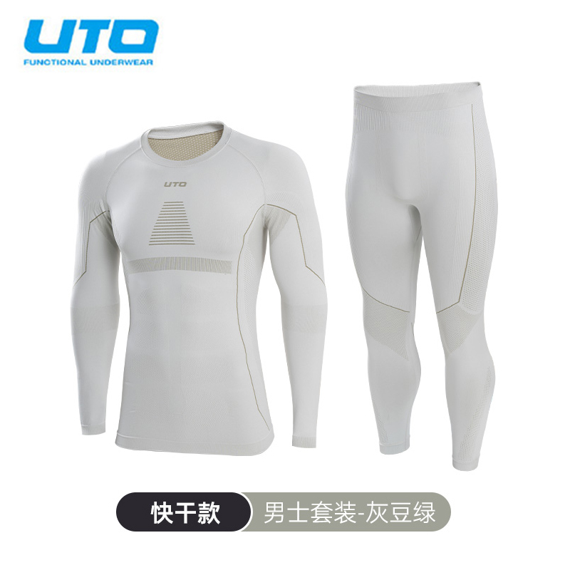UTO悠途 男士速干套装 压缩速干男户外登山滑雪运动保暖内衣 973102 灰豆绿
