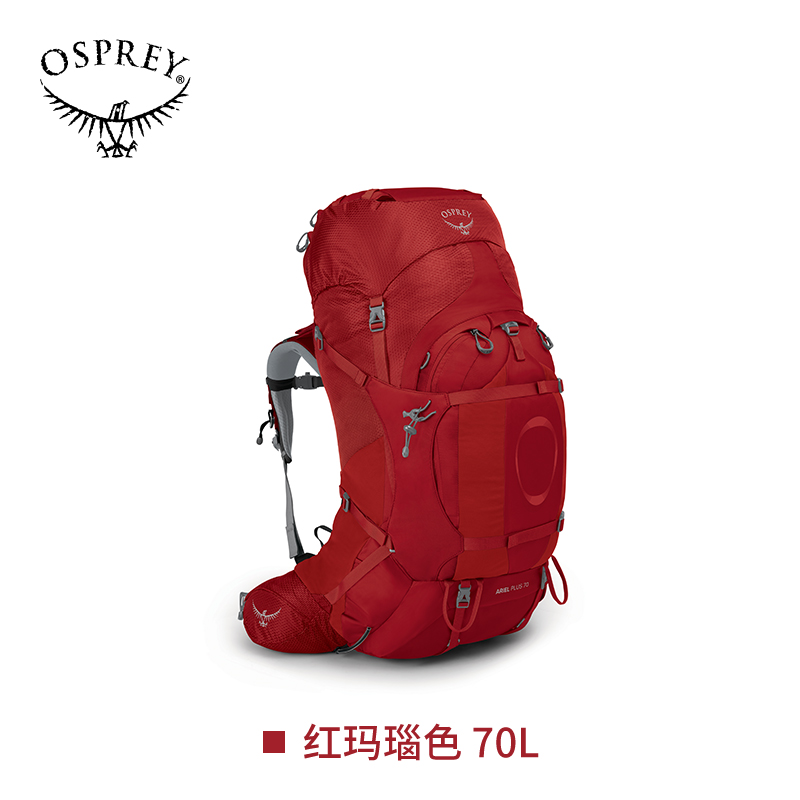 OSPREY小鹰 精灵plus70 户外专业大容量登山徒步旅行双肩背包新款女 红玛瑙色