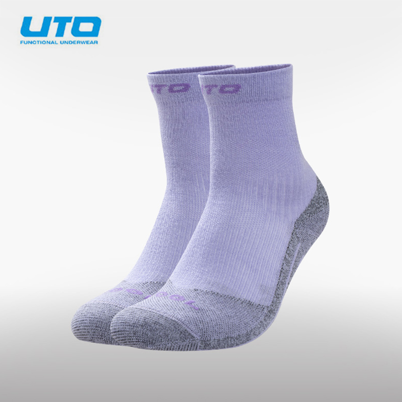 UTO悠途 女士美利奴羊毛袜子 户外徒步跑步运动袜子女短筒袜四季可穿 92501204 暮山紫