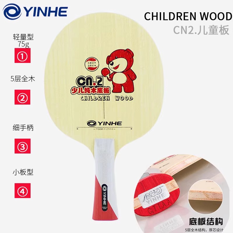 YINHE银河 儿童乒乓运动初学底板CN-5S 轻型青少年入门球板【5层纯木】