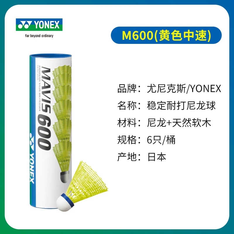 尤尼克斯YONEX羽毛球 尼龙球六只装 MAVIS600 M600 白黄两色 日本进口耐打训练室外娱乐抗风稳定 超耐打训练用羽毛球省钱好用一个顶6个天然羽毛球