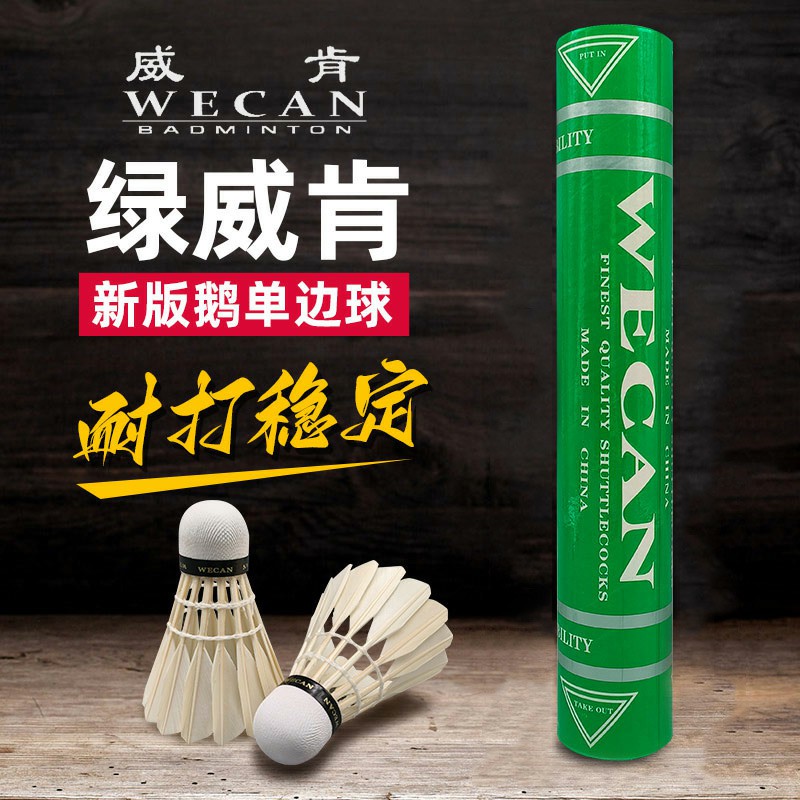 Wecan威肯 羽毛球 绿威肯 新升级鹅毛球 专业比赛训练用球 耐打稳定性价比高 77速超高性价比的日常娱乐用球,鹅毛小方毛片,超耐打