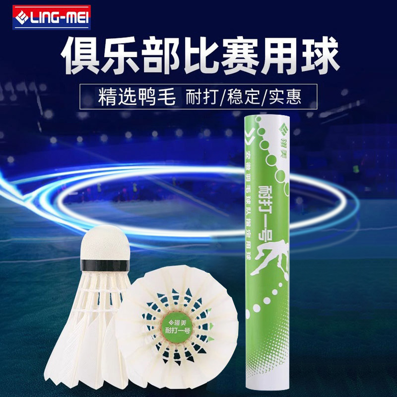 翎美LINGMEI羽毛球 耐打1号鸭毛球 高弹稳定耐打之王 俱乐部比赛训练用球 12只/筒 76/77速性能类似亚10 超耐打 高性价比