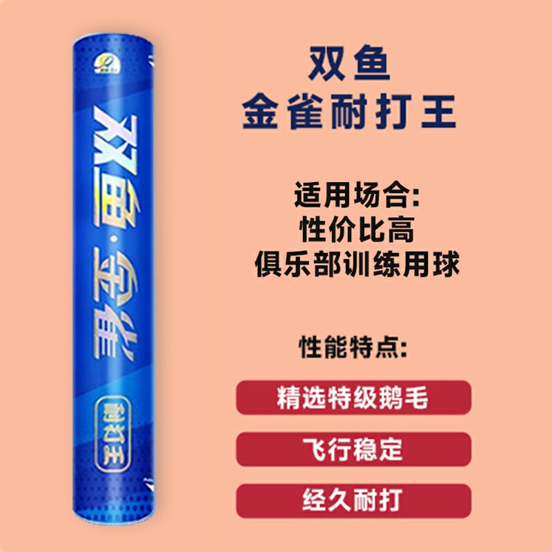 双鱼 羽毛球 金雀耐打王 比赛训练俱乐部用球 耐打稳定鹅毛球 12只/筒优质鹅毛,飞行稳定,耐打有弹性