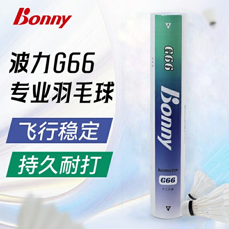 Bonny波力 G66羽毛球 鹅毛球飞行稳定 耐打型二拼球头 比赛训练球飞行稳定 击球手感佳 耐打性好