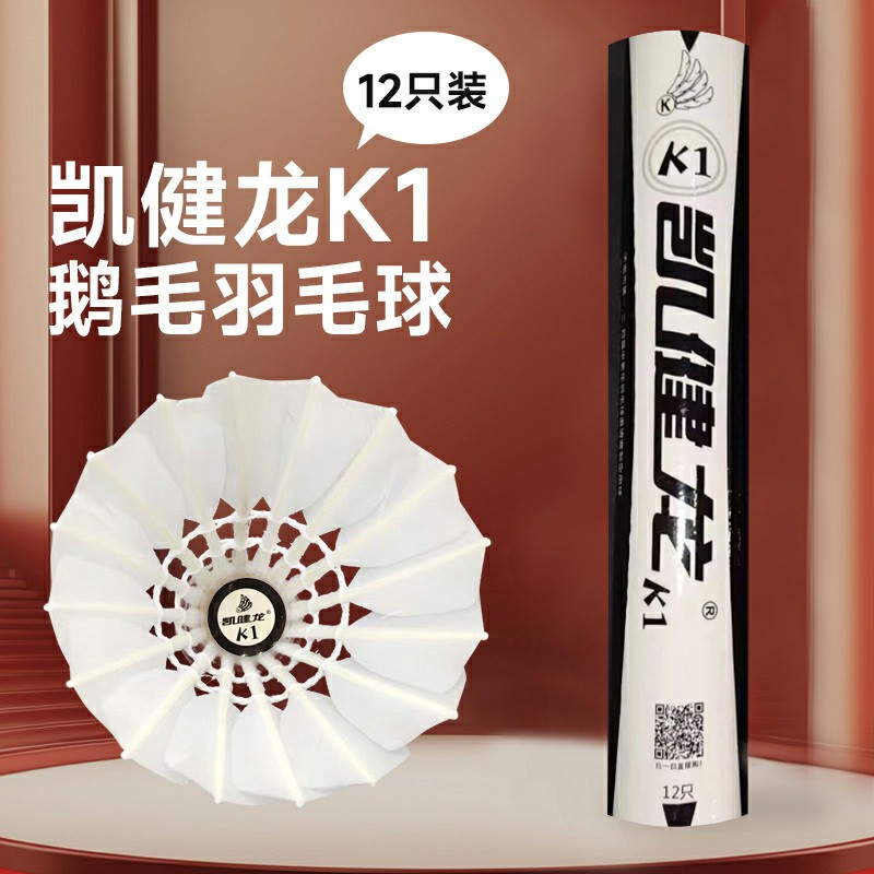凯健龙 羽毛球 K1 鹅毛拉直 性价比球 室内球馆比赛训练用球 12只/筒厚实耐打 飞行稳定