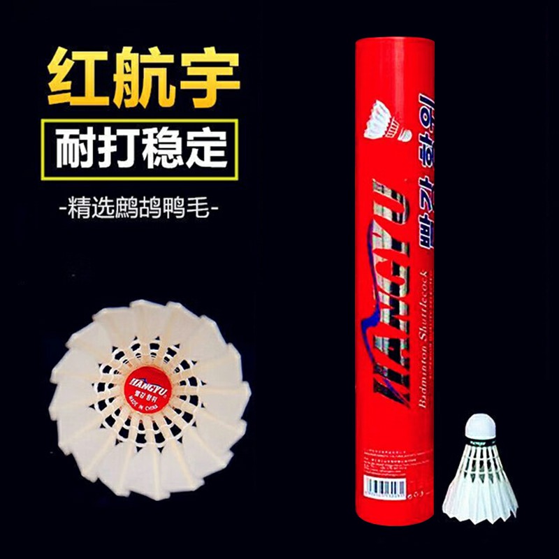 航宇 红航宇 羽毛球 比赛训练球 耐打耐用 鹚鸪鸭中小方毛 12只/筒 飞行平稳 落点稳定 经久耐打