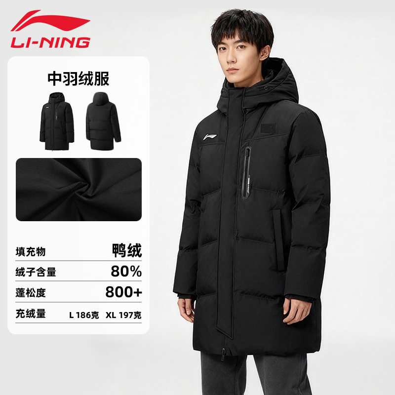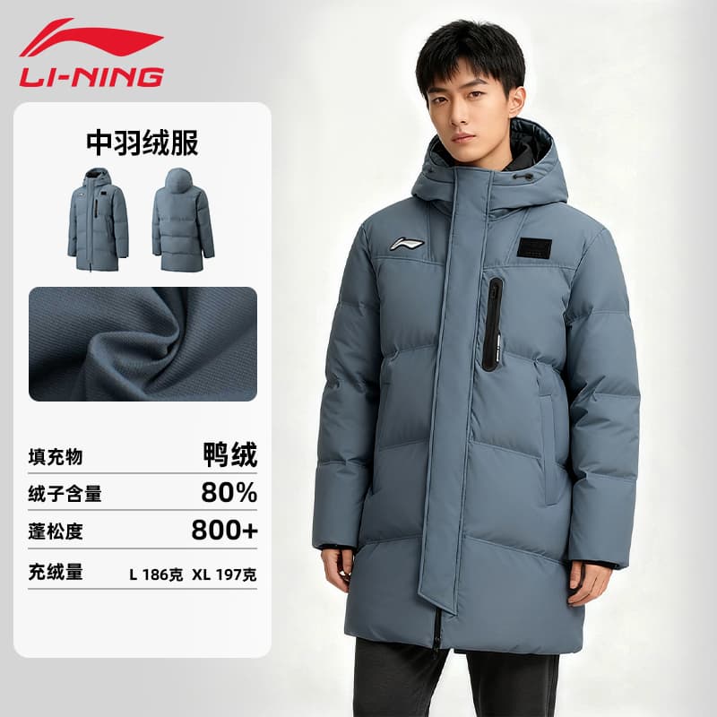 LI-NING李宁羽毛球服 羽绒服 男女款中长款 2025冬季新款 日常训练系列 保暖加厚外套 AYMV133-2 水手蓝超级宠粉日精选秒杀,原价529元,现仅需499元!