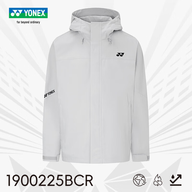 尤尼克斯YONEX羽毛球服 男款 加绒运动外套 2025秋冬防风连帽夹克休闲服 1900225BCR_764 灰珍珠本品参加超级宠粉日满129减20 299减50 499减80 999减120元大促!