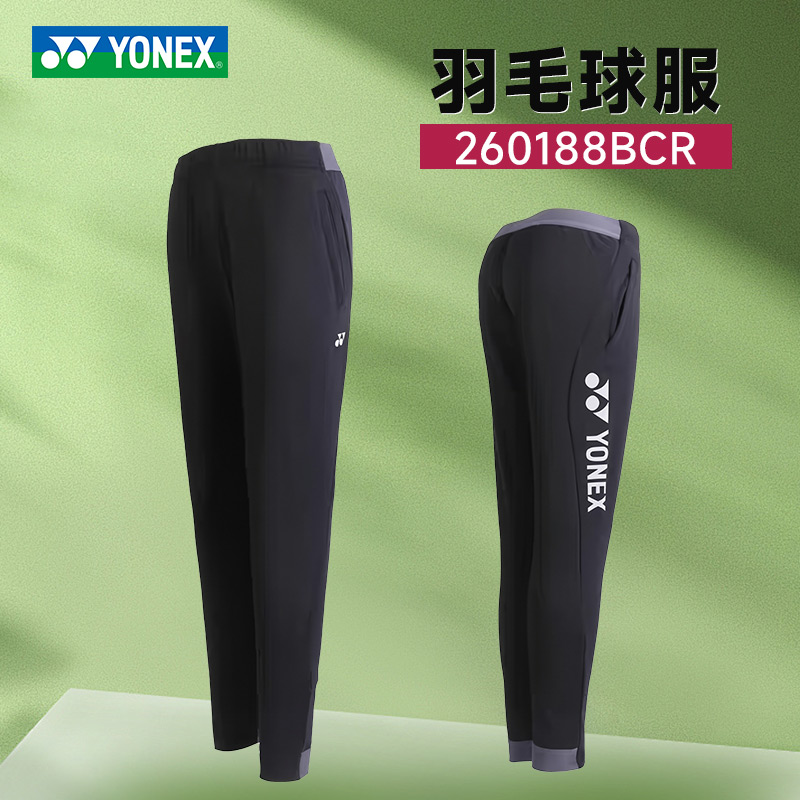 YONEX 尤尼克斯 羽毛球服 男女款 运动长裤 团队比赛训练服 260188BCR 黑色亲肤舒适 弹力不勒 特惠商品 售完无补!