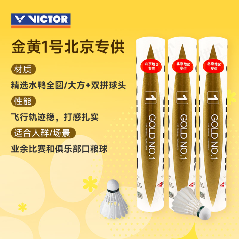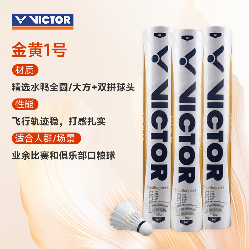 VICTOR胜利威克多羽毛球 金胜利 金黄1号GD1 3筒装 金黄一号 优个畅销榜羽球耐打飞行稳定打感舒适,球头弹性大畅销不衰的经典之作!畅销榜首羽球,俱乐部用球推荐款