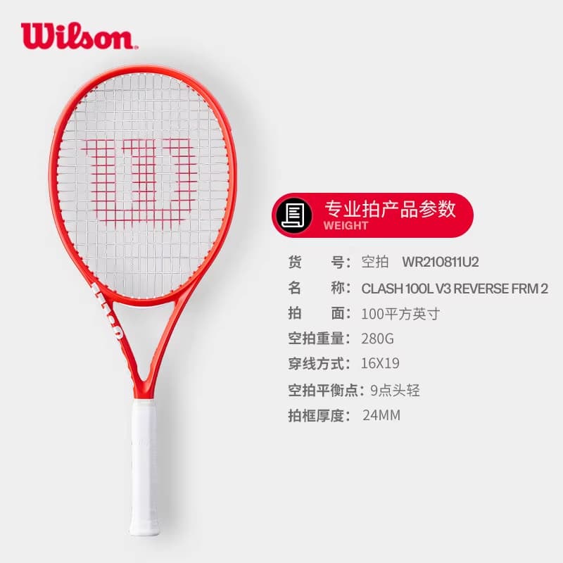 Wilson威尔胜网球拍 26新年红运拍CLASH 100L V3红色限定专业全碳素网球拍 WR210811 100/280 红运拍踏青运动季超级秒杀,原价2319元,现仅需2099元!