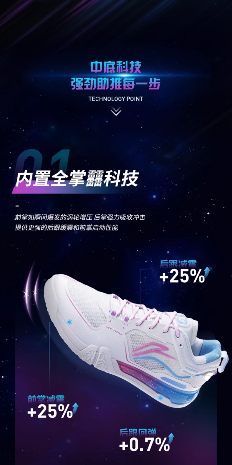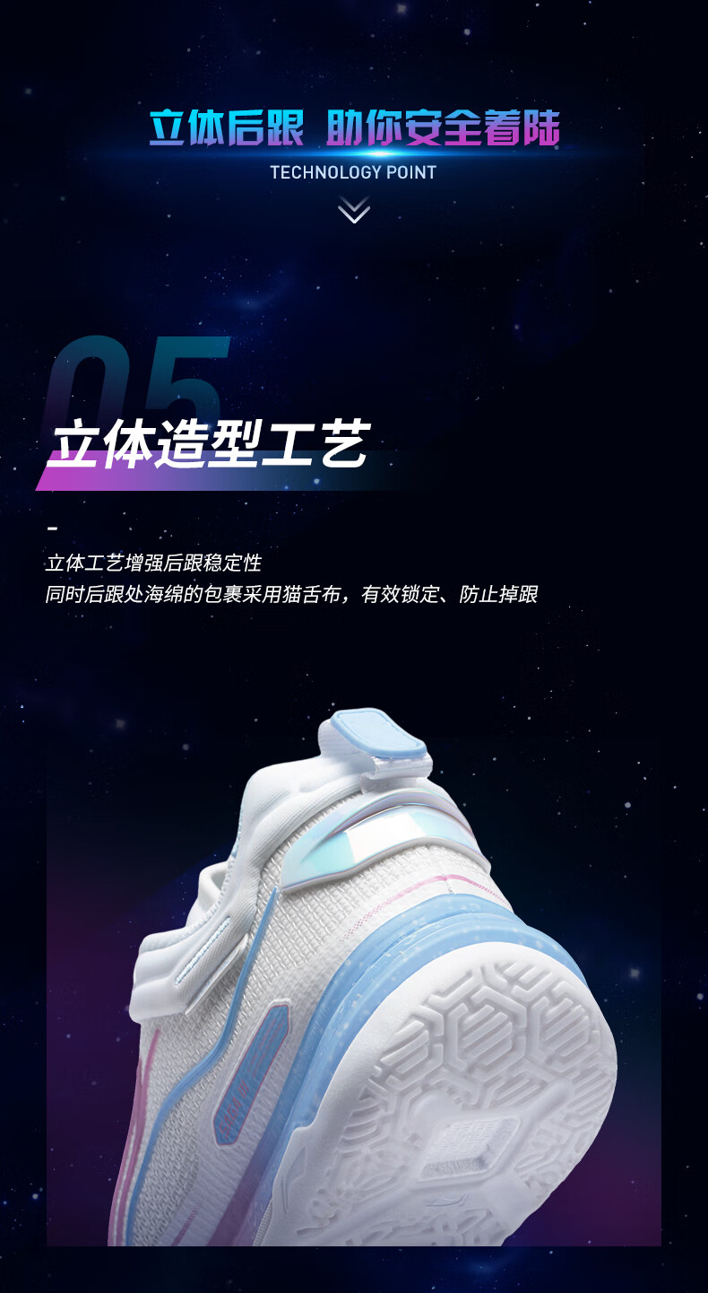 李宁云框架能够有效限制超临界材料的过度形变,大大增加了中底的稳定性,让球员在快速移动和变向时更加稳健。