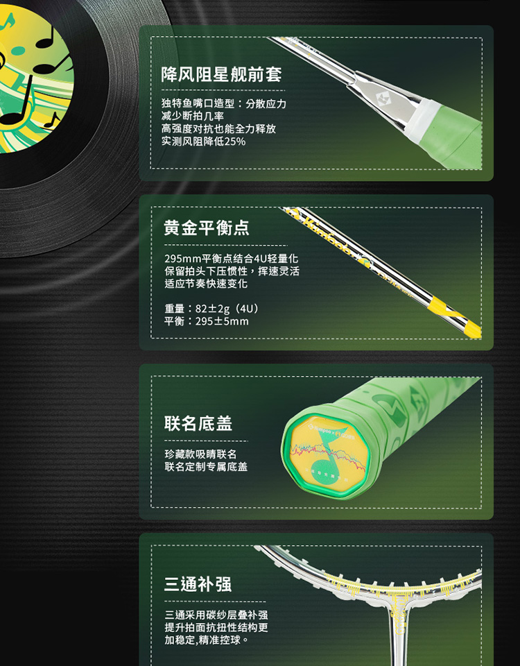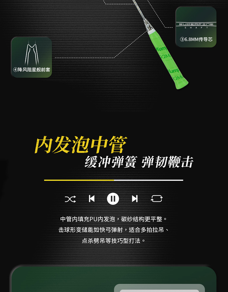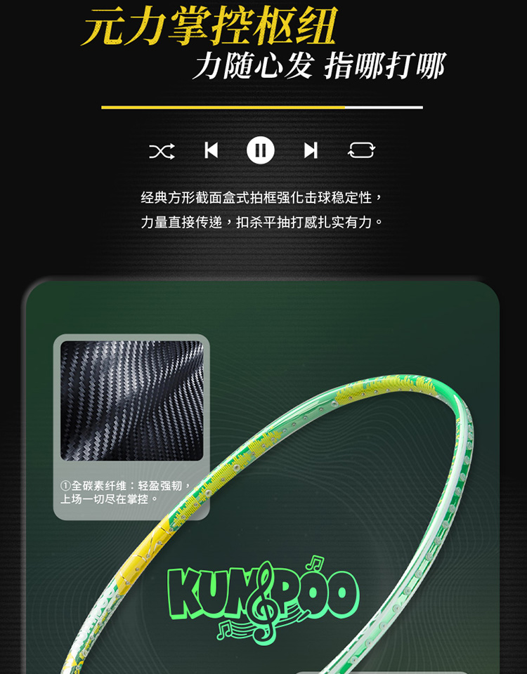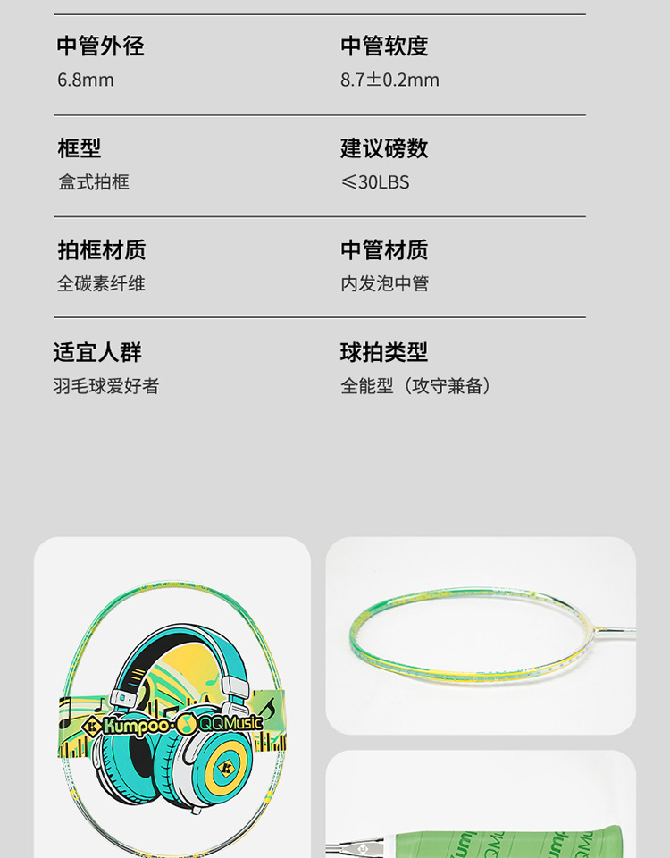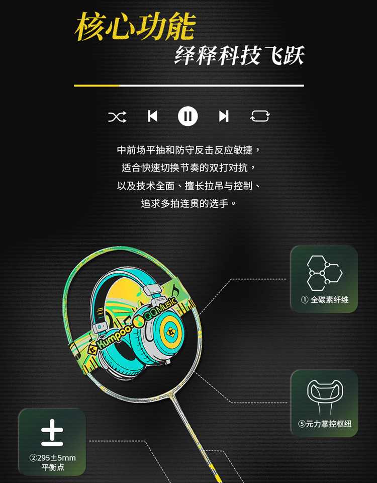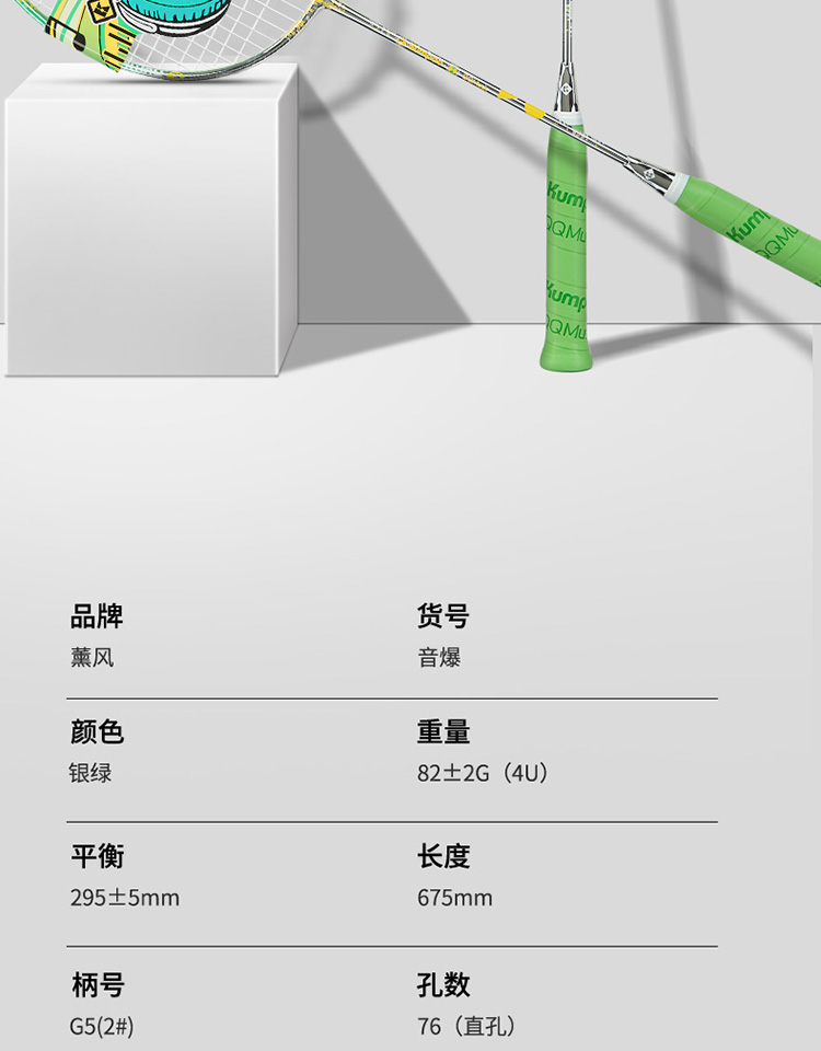 KUMPOO 薰风 羽毛球拍 音爆 QQ音乐联名款 超轻全碳素 专业训练单拍 熏风 4U 电镀银 QQ音乐联名款 攻守兼备单拍