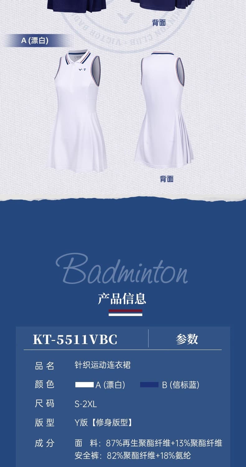 VICTOR 威克多 羽球俱乐部系列 羽毛球服 女款 针织无袖连衣裙 KT-5511VBC A 漂白 修身版型,柔软透气,亲肤舒适
