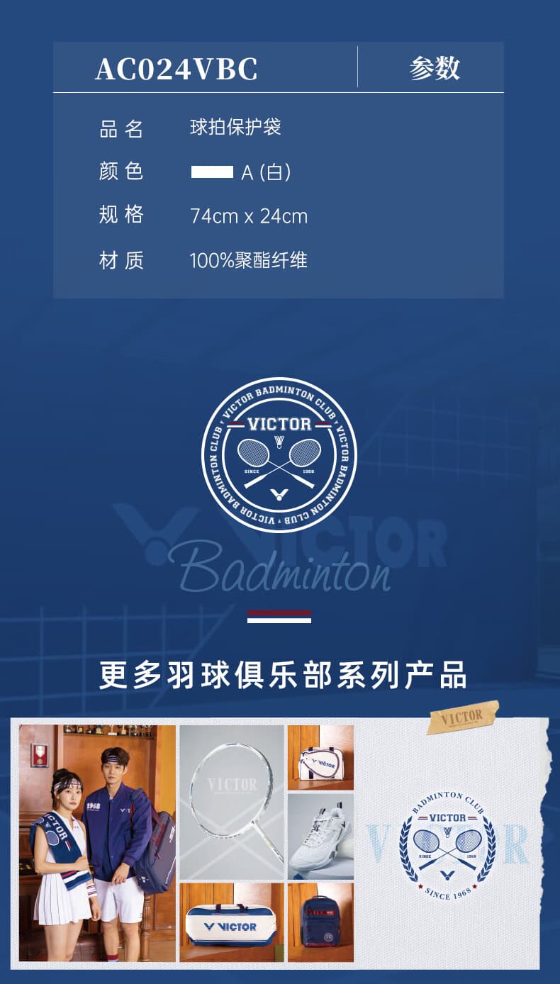 VICTOR 威克多 羽球俱乐部系列 羽毛球拍套 单肩手提 运功收纳便携球拍套 AC024VBC A 漂白 羽球俱乐部系列球拍保护袋