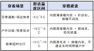注:温度为常规体感参考,受个体耐寒度、活动量及穿搭影响;其长款设计 + 防风面料可进一步提升低温适配性。