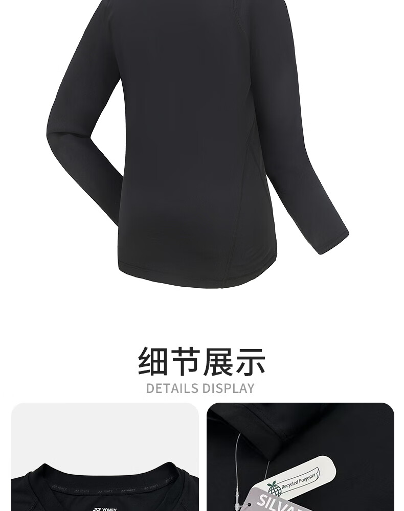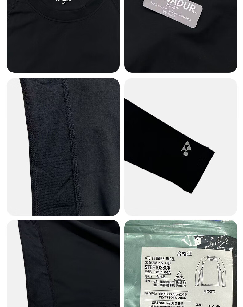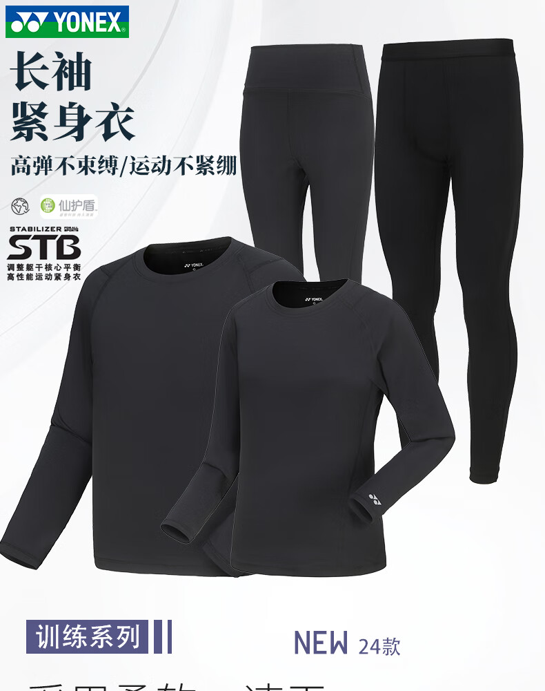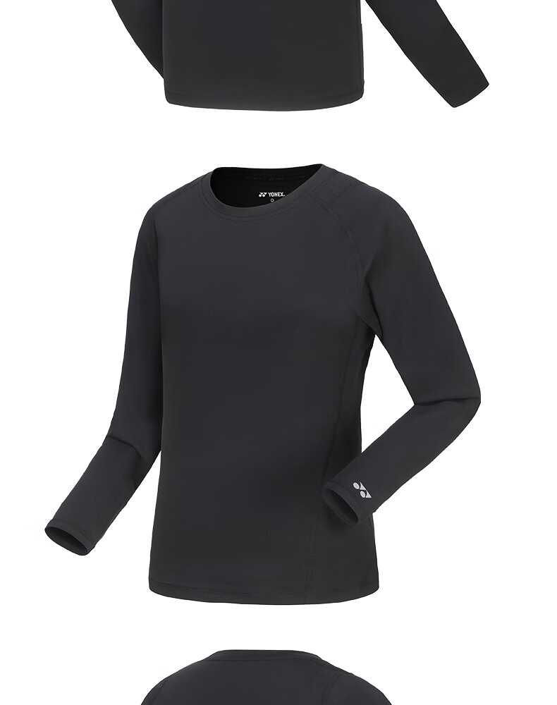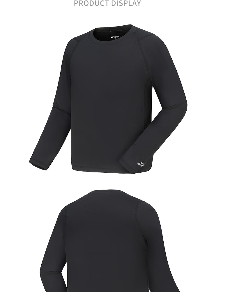 YONEX 尤尼克斯 羽毛球服 男款 紧身长袖 秋冬运动长袖上衣 STBF1023CR 黑色 高弹不東缚 运动不紧绷