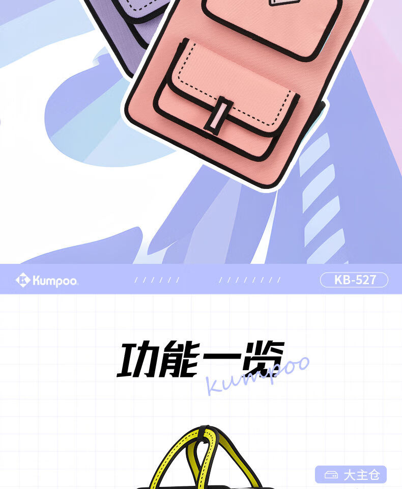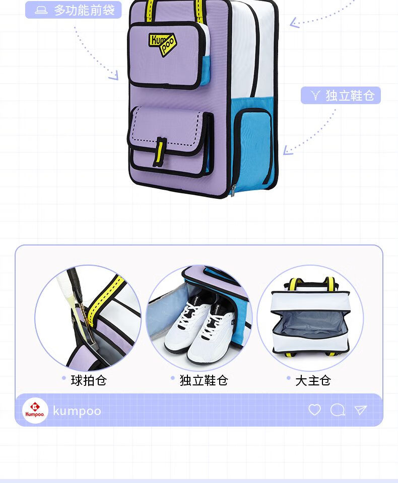 KUMPOO 薰风 漫画系列 羽毛球包 熏风便携时尚运动手提包双肩背包 KB-527 大容量多功能 独立鞋仓