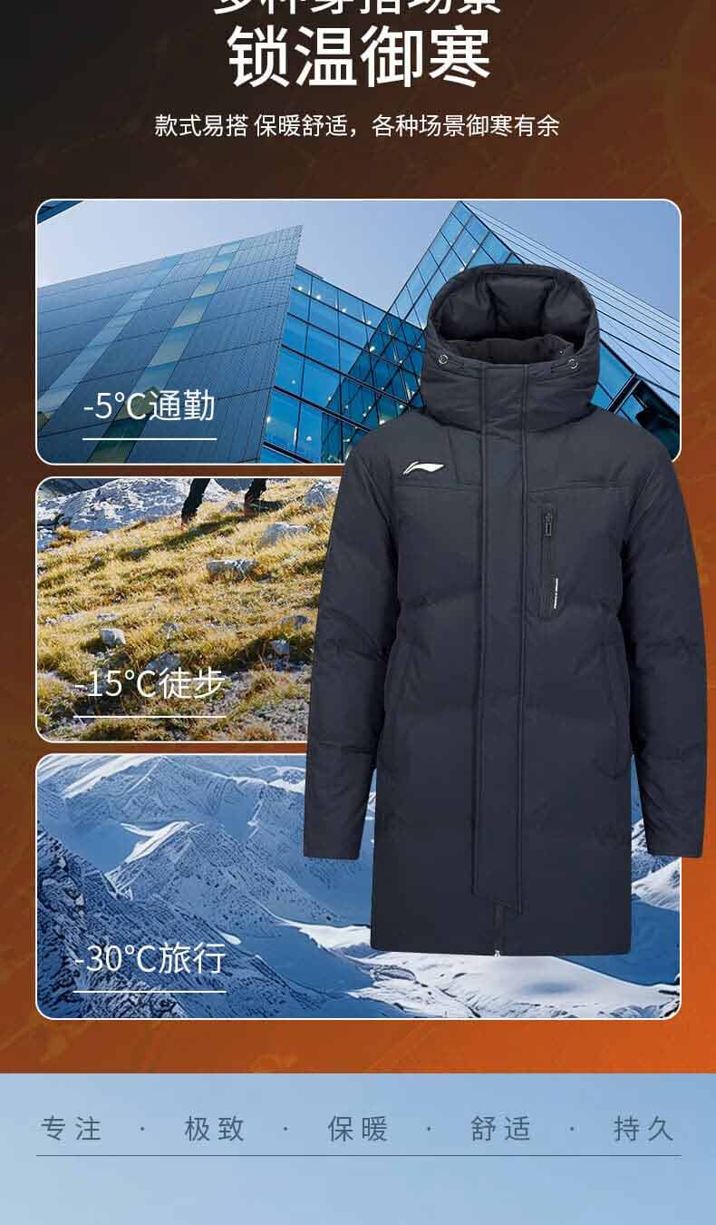 LI-NING李宁羽毛球服 羽绒服 男女款中长款 2025冬季新款 日常训练系列 保暖加厚外套 AYMV133-1 黑色 谌龙同款 80%白鸭绒含量