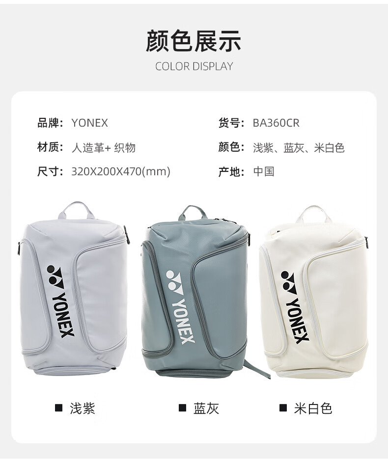 YONEX尤尼克斯 BA360CR 双肩包 网羽运动 + 健身的全能搭档,颜值与实用性双在线~