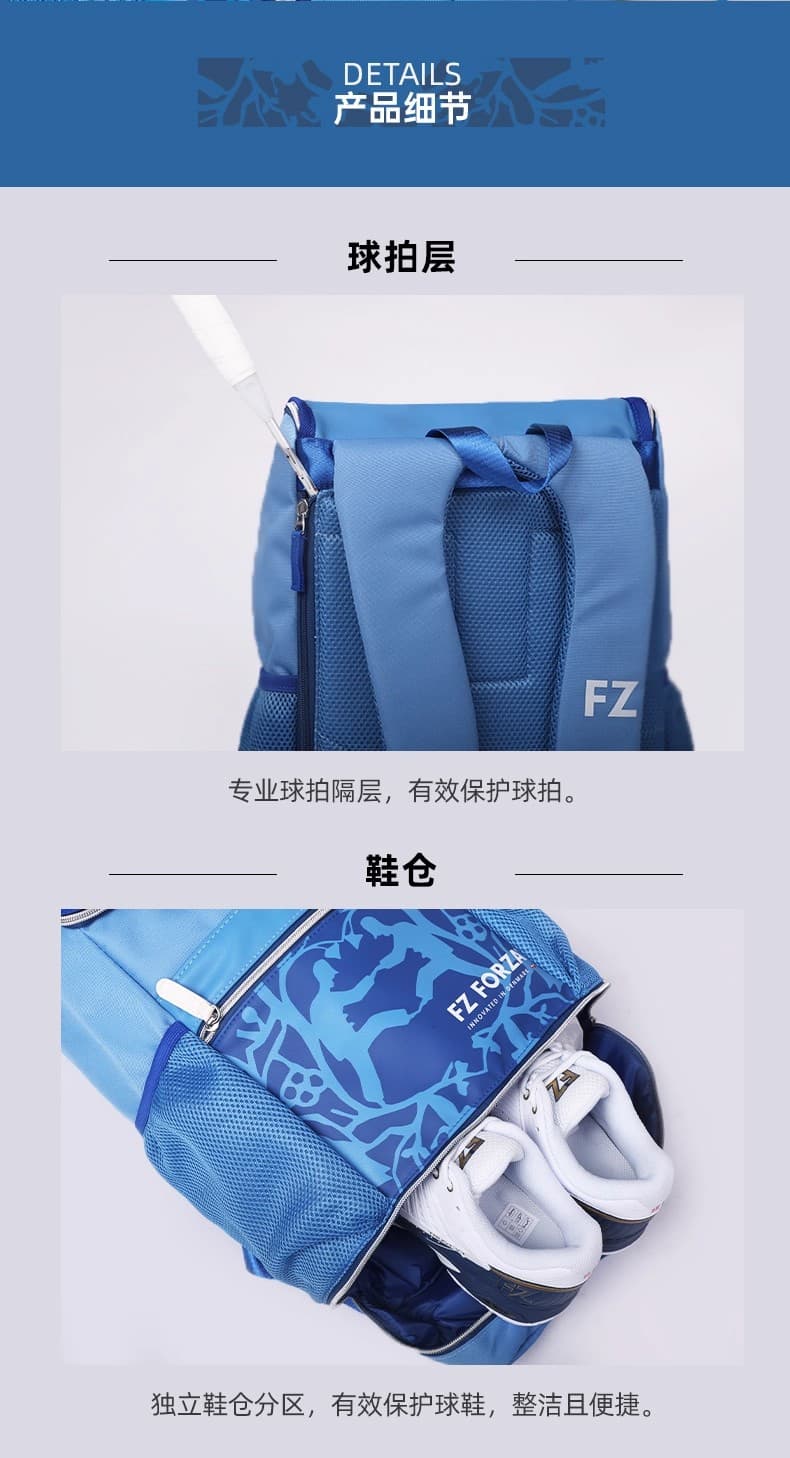 FZ FORZA 羽毛球包 安徒生博物馆联名系列 运动背包 多功能潮流双肩背包 大容量独立鞋仓 F 波斯蓝 安徒生博物馆联名系列 独立鞋仓拍仓 多点储物