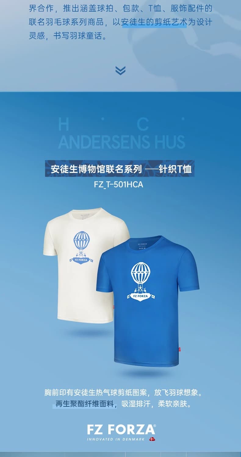 FZFORZA 羽毛球服 男女款 运动短袖 休闲舒适上衣T恤 安徒生博物馆联名系列 T-501HCA 象牙白 本品参加12.12返场特惠满129减20 299减50 499减80 999减150元大促!