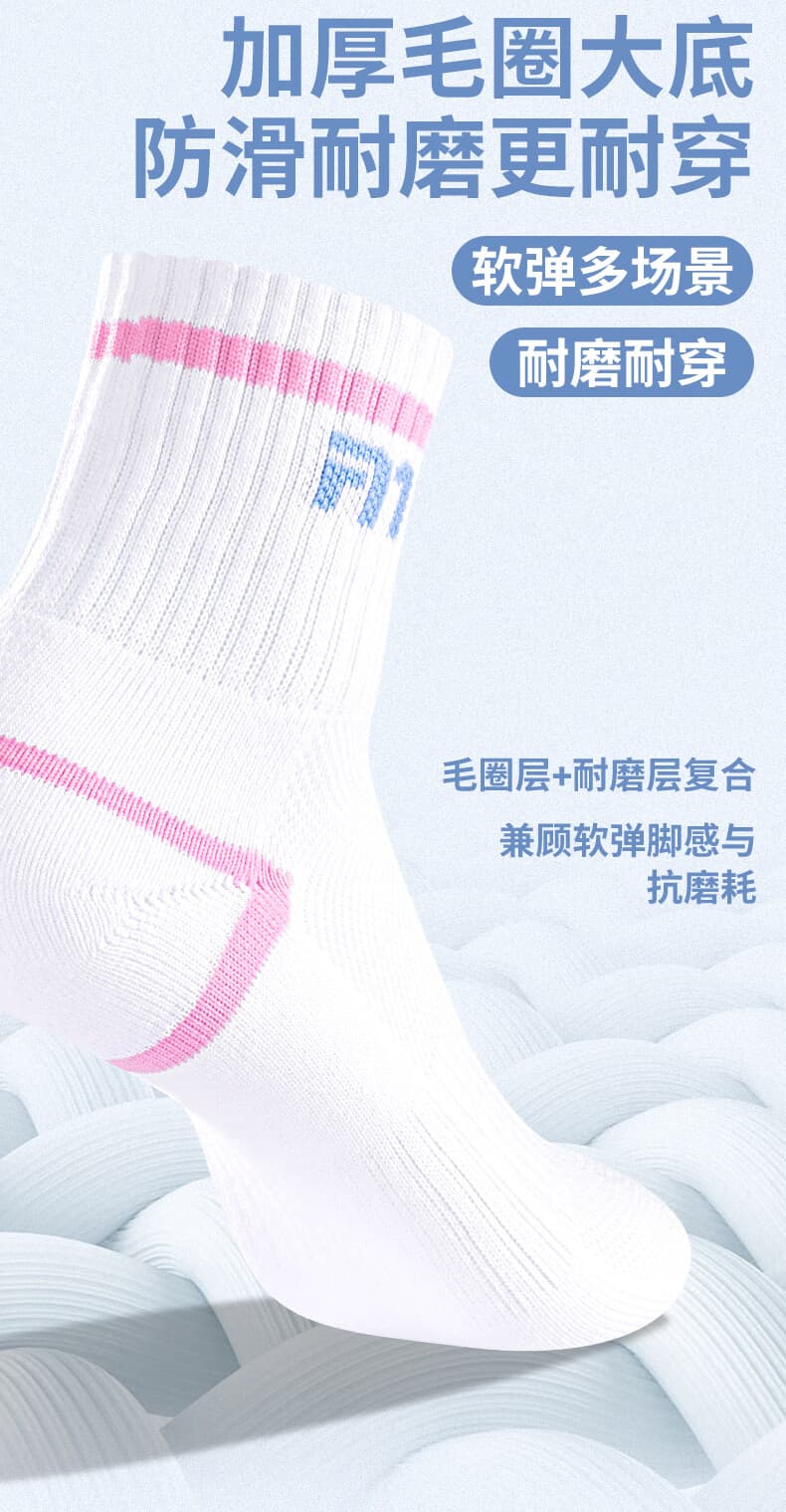 泰昂TAAN羽毛球袜 女款 T203运动袜 中筒棉袜 加厚毛巾底 吸湿排汗 柔软舒适 三色可选 防滑耐磨更耐穿