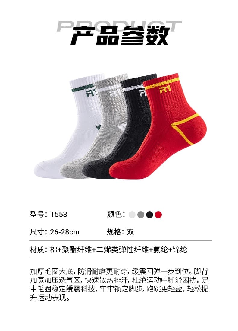 TAAN 泰昂 羽毛球袜 男款 加厚毛圈减震透气中筒袜 户外跑步耐磨运动袜 T553 多色可选 单双装 26-28cm 缓震透气 防臭防滑