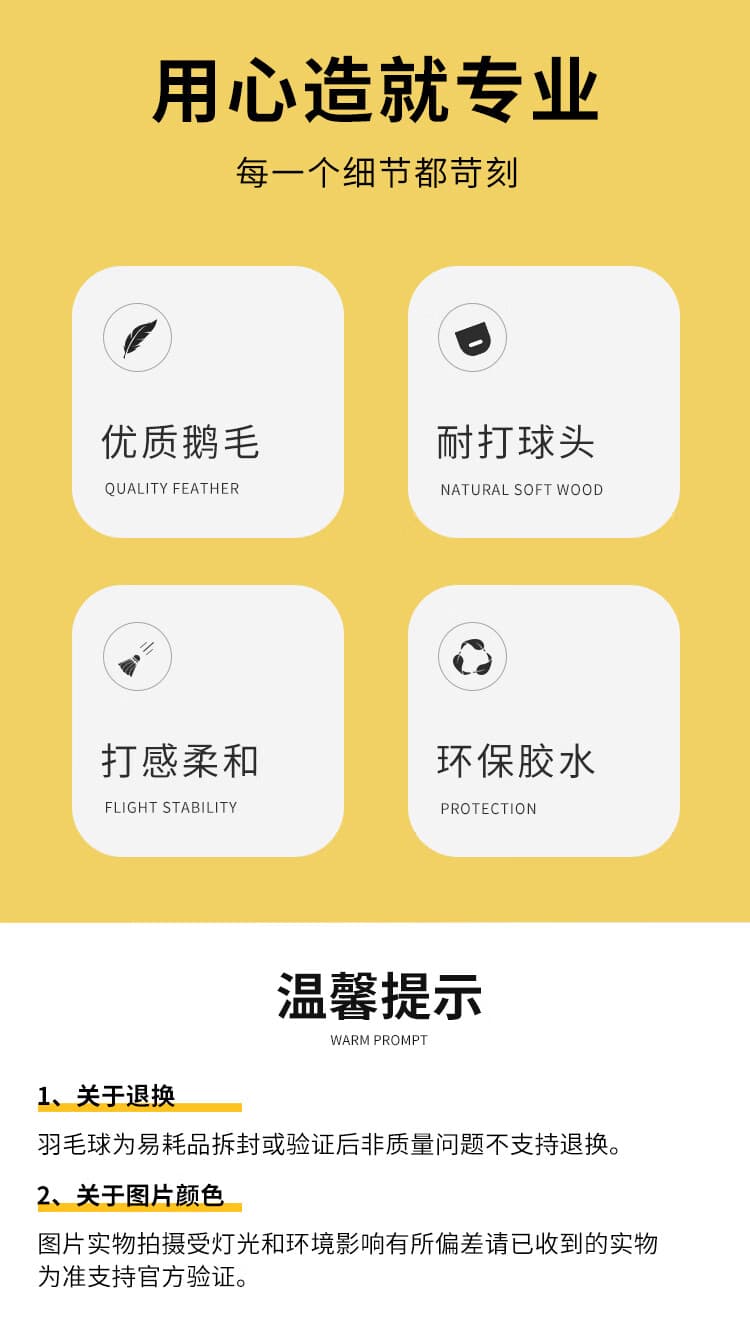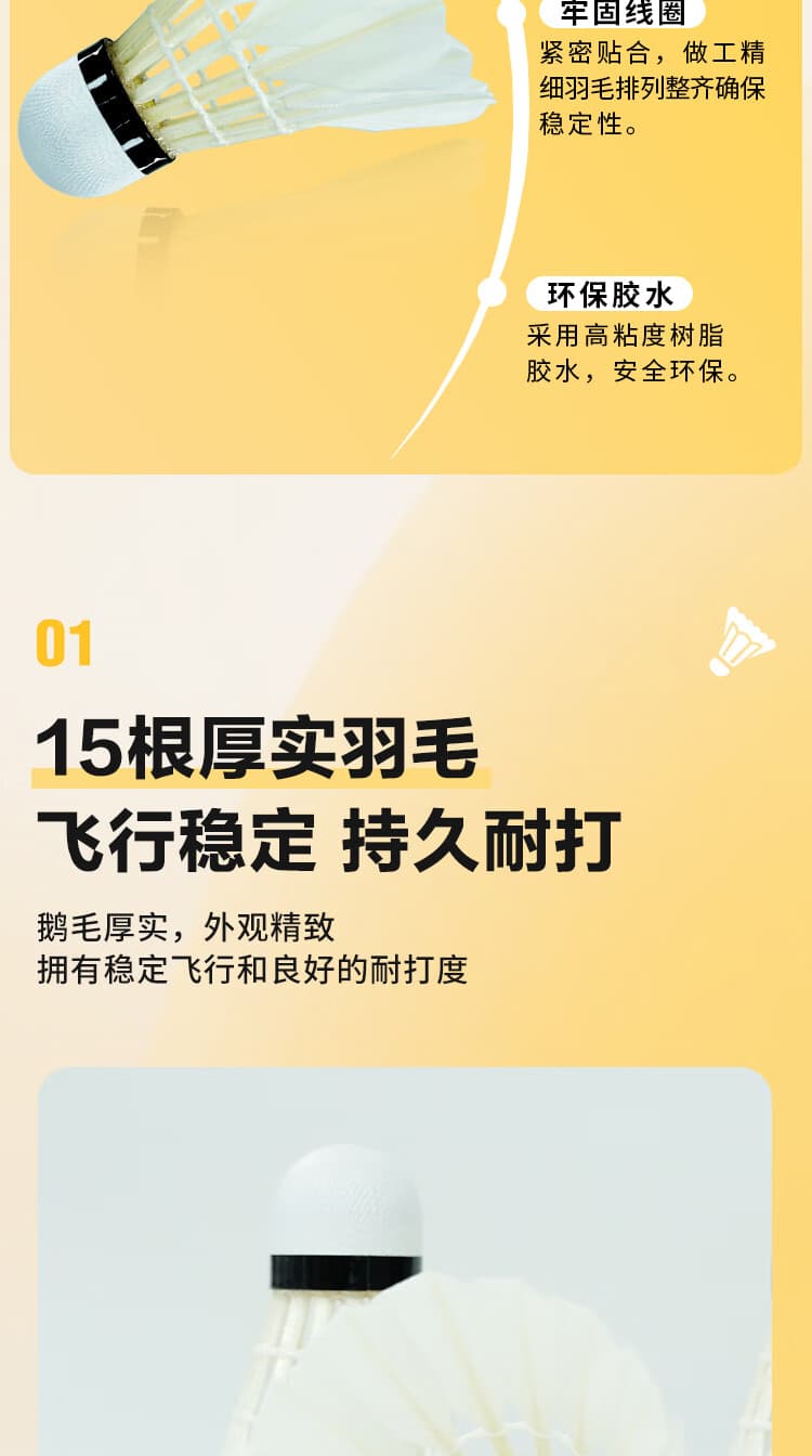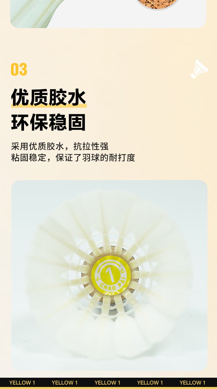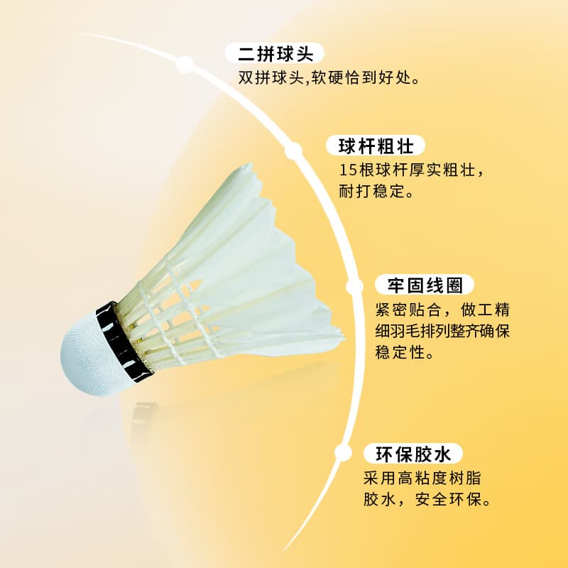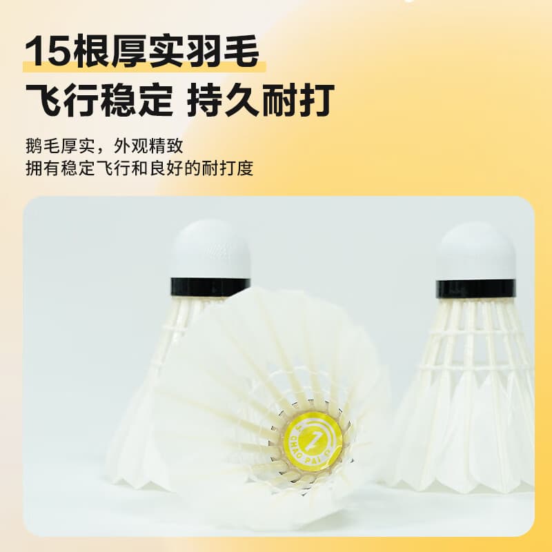 超牌 羽毛球 鹅毛球 黄超1号 15根羽毛 俱乐部训练球 耐打耐用 室内外可用 12个/筒 耐打稳定,适合俱乐部使用。