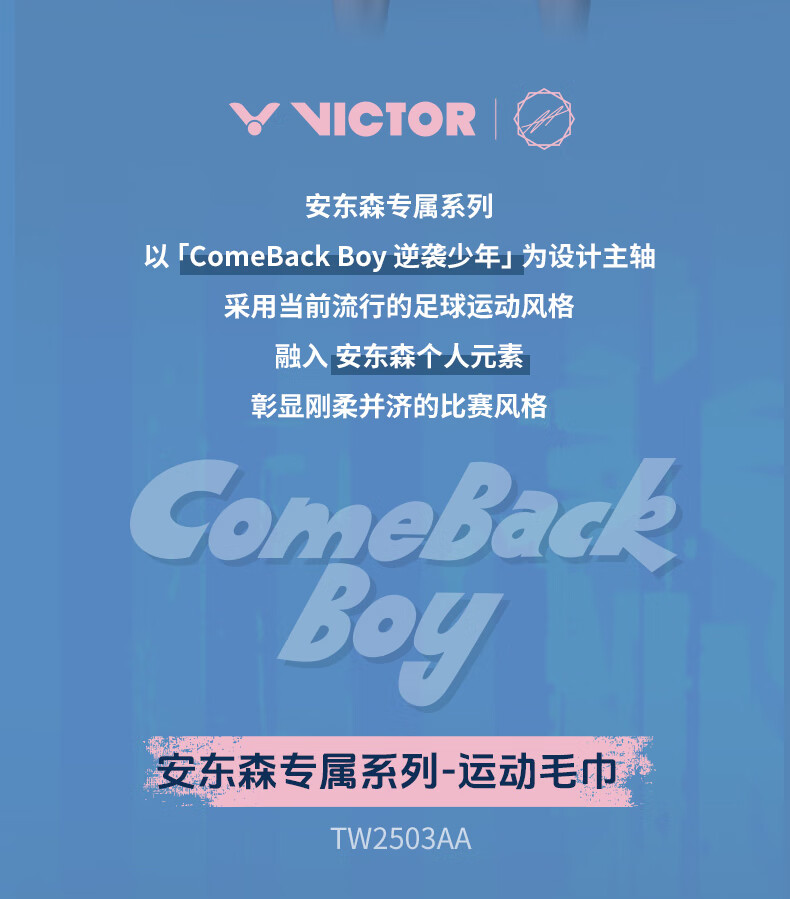 威克多VICTOR胜利运动毛巾 TW2503AA 安东森系列 纯棉毛巾跑步健身吸汗擦汗 I波光粉 柔软舒适 干爽亲肤