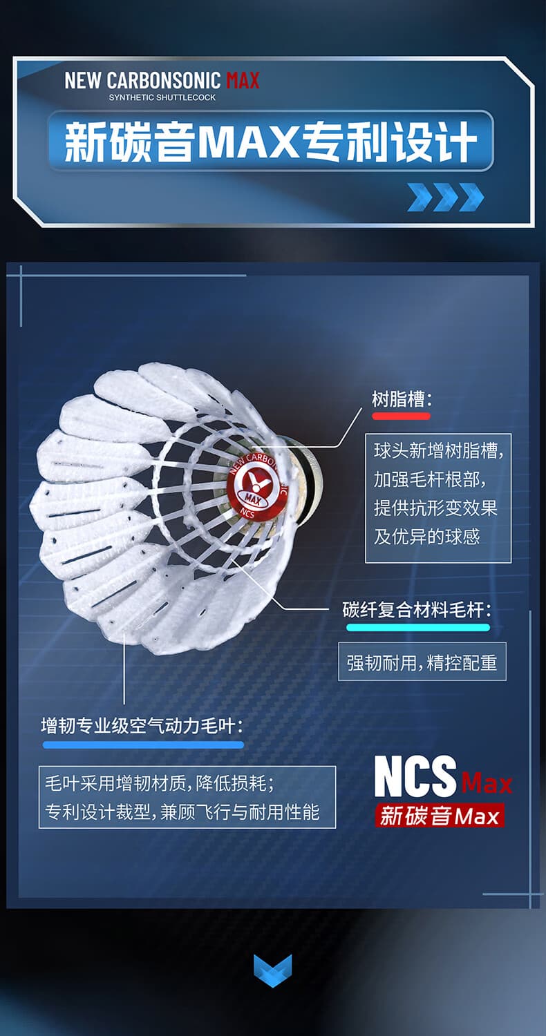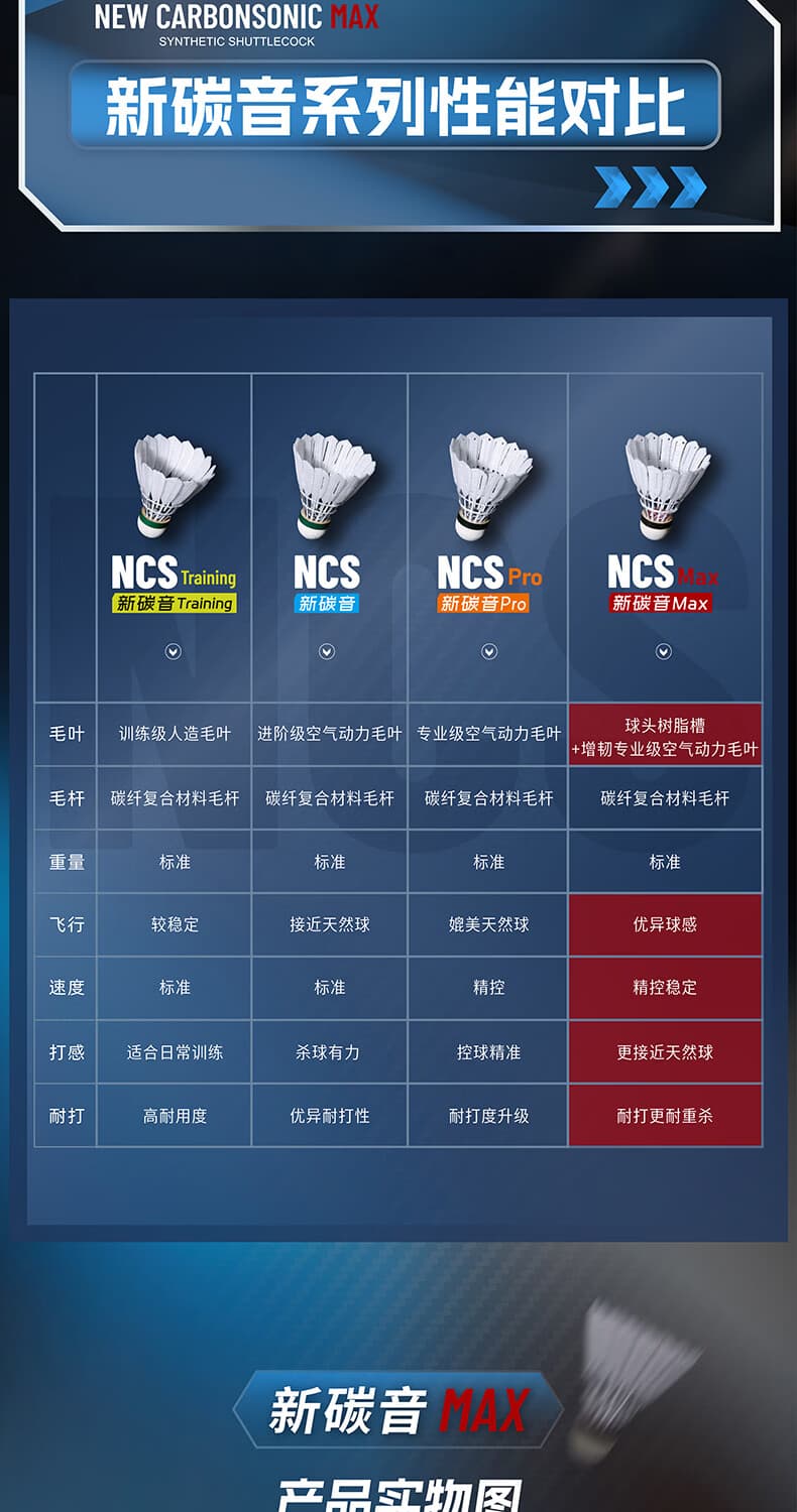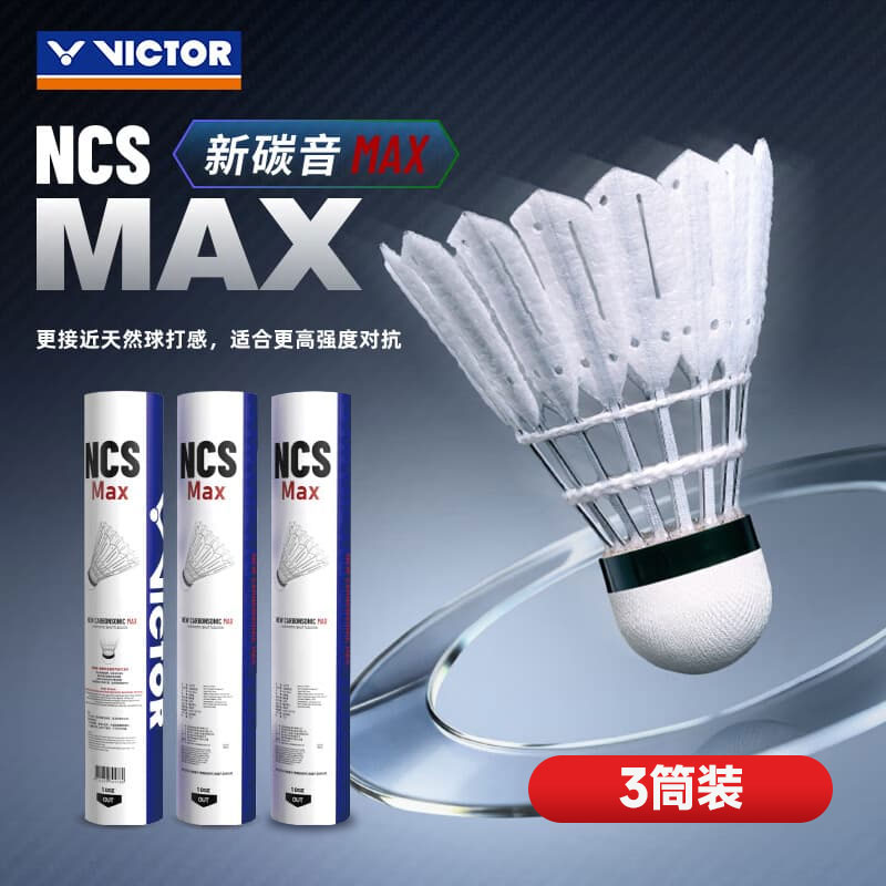 VICTOR 威克多 人造羽毛球 新碳音MAX 耐打飞行稳定训练比赛用球 NCS MAX 12只/筒 更接近天然球打感,适合更高强度对抗