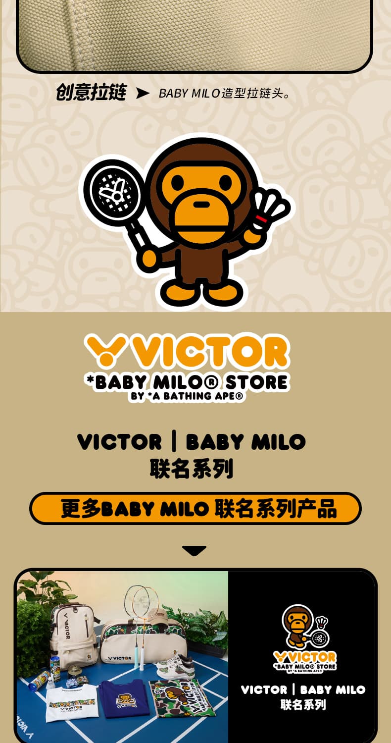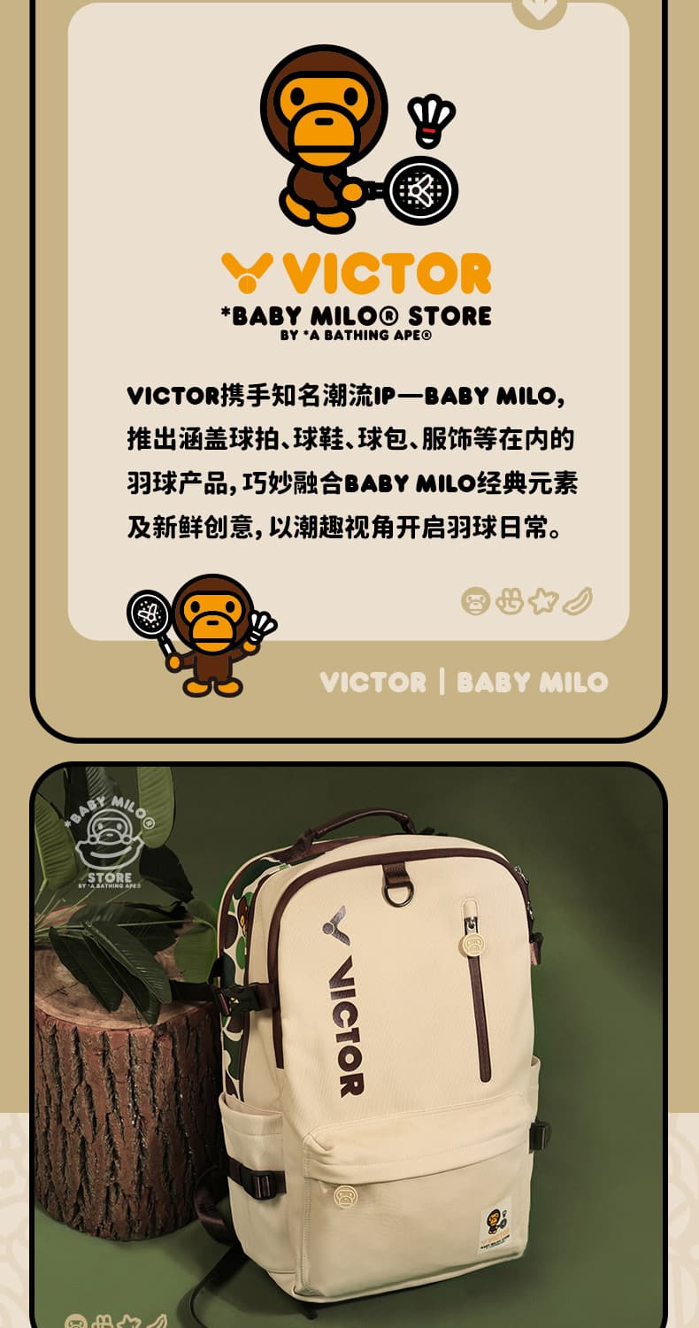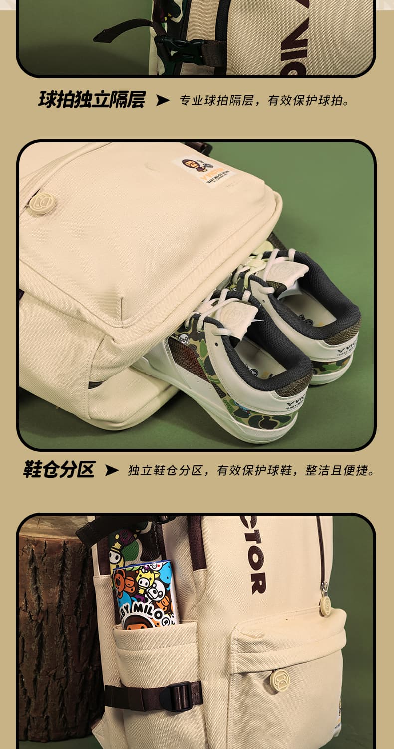 VICTOR 威克多 BABY MILO联名系列 运动双肩背包 大容量独立鞋仓拍仓运动背包 BR5049BM 卡其 本品参加超级宠粉日满129减20 299减50 499减80 999减120元大促!